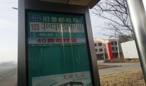 40線站序:明達(dá)世紀(jì)花園鞍山人才市場(chǎng)-米蘭小區(qū)匯園大道英路-長(zhǎng)興街 - 鐵東區(qū)法院- 新?tīng)I(yíng)廣場(chǎng)解放東路- 園林大道- 中華南路 - 榮譽(yù)街 - 新華園 - 交通賓館 - 千山區(qū)政府舊堡郵政局(臨時(shí)站)-舊堡 - 千山區(qū)委--馬驛屯